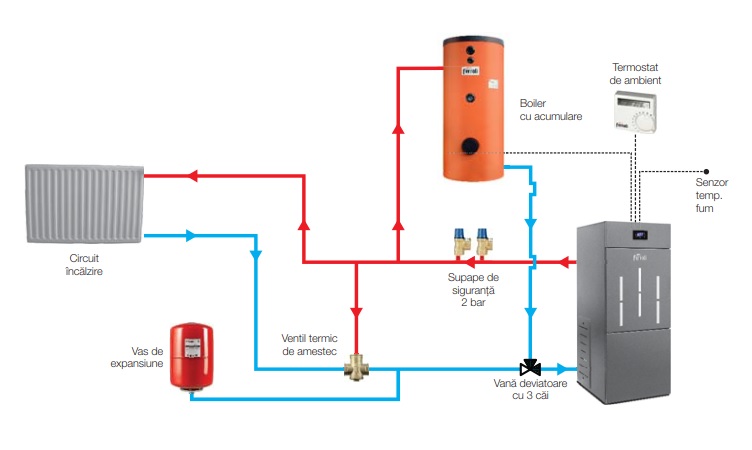 Cazan din otel pe peleti Ferroli BioPellet Pro - schema hidraulica 2