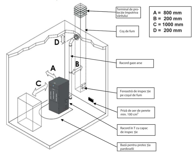 Cazan din otel pe peleti Ferroli BioPellet Pro - instalare cos de fum