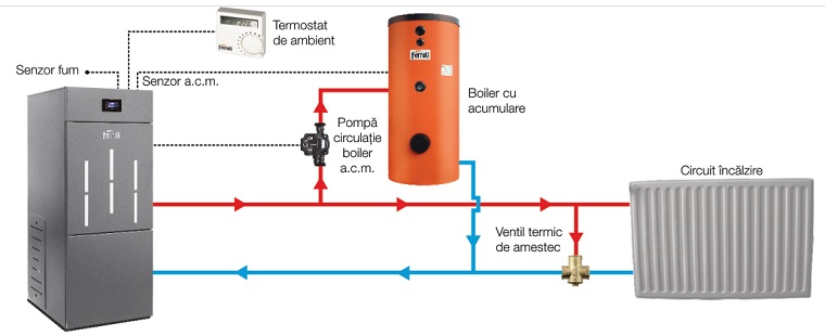 Cazan din otel pe peleti Ferroli BioPellet Pro - schema hidraulica