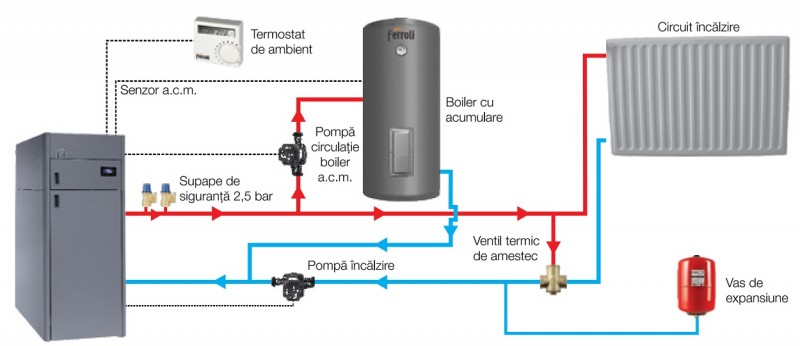 Cazan pe peleti Ferroli BioPellet Compact 40 - 40 kW - schema de instalare