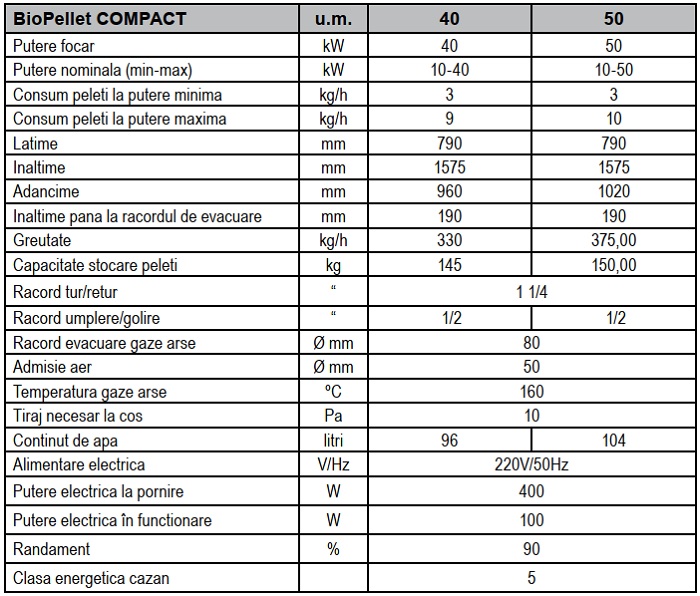 Cazan pe peleti Ferroli BioPellet Compact - date tehnice