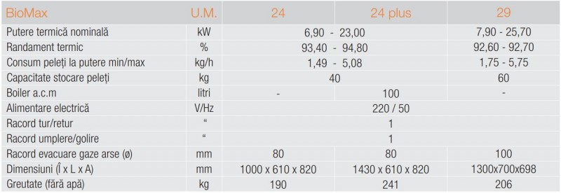 Cazan din otel pe peleti FERROLI BIOMAX - date tehnice