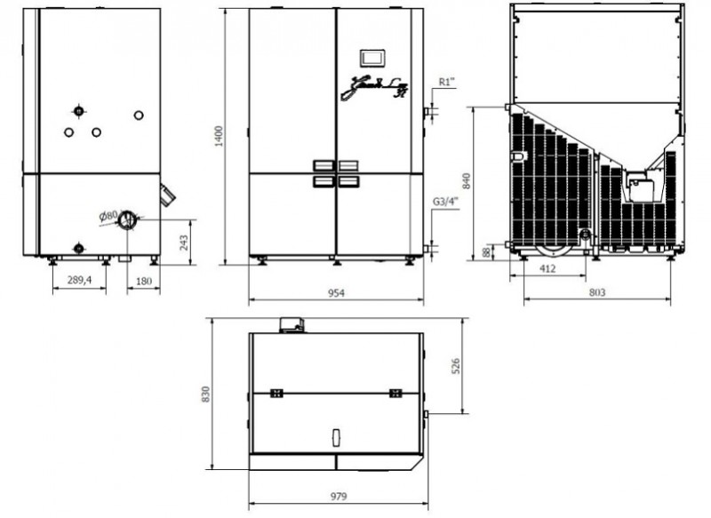 Centrala termica pe peleti ALFA PLAM GRANDE LUX R-C 37 kW - dimensiuni