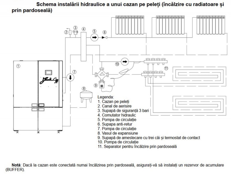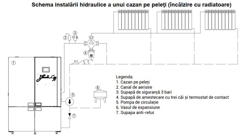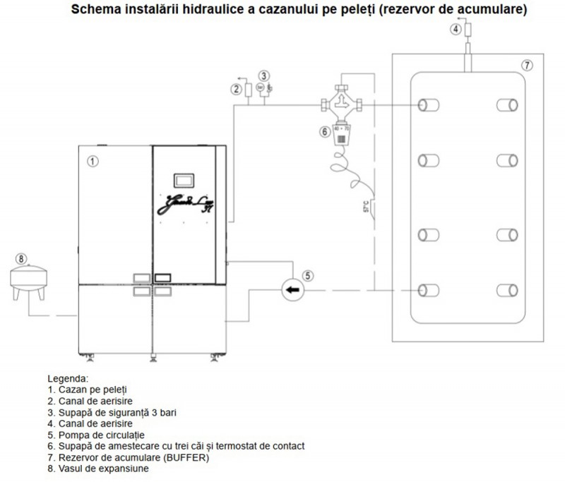 Centrala termica pe peleti ALFA PLAM GRANDE LUX R-C 37 kW - scheme de instalare